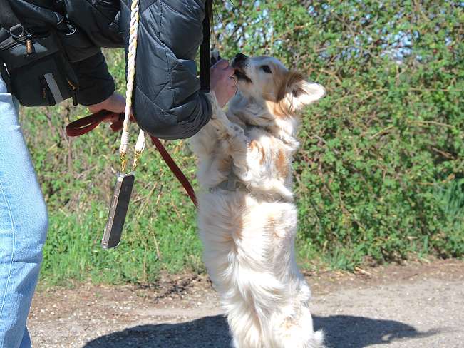 Warum man Alizia nicht mehr haben wollte, kann man gar nicht verstehen, ist sie doch eine sehr freundliche, zugewandte, eher ruhige und aufgeschlossene Hundedame. Sie geht gerne spazieren, läuft dabei recht ordentlich an der Leine und inspiziert neugierig die Umgebung. Sie wirkt jünger, als sie gemäß ihrem Pass ist, denn sie bewegt sich noch sehr fit und locker.