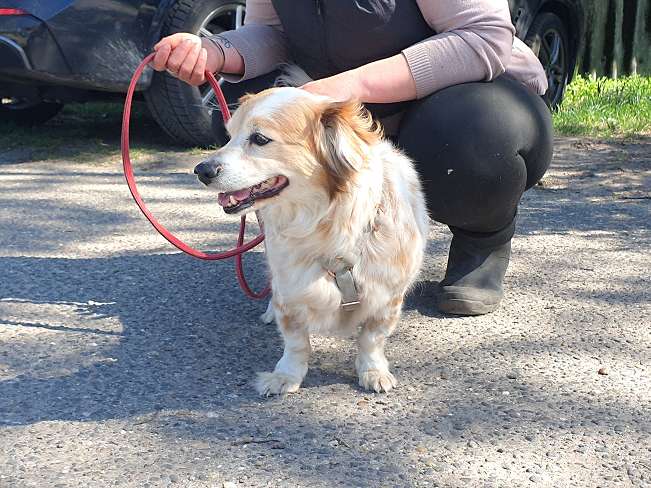 Die im Februar 2015 geborene Alizia hat eine merkwürdige Geschichte. Sie wurde Ende März 2026 von einer Frau auf der Straße in Cegléd entdeckt, wo sie alleine herumstreunte. Die Dame schaute nicht weg, sondern lockte die zutrauliche Hündin an und brachte sie gleich selbst ins Tierheim. Alizia war zwar gut genährt, aber voller Flöhe (das Auto der Finderin nach der Fahrt auch 🙈) und ihr Fell war stark verkotet. Sie hatte zudem einen registrierten Chip und der hinterlegte Besitzer war eine Organisation aus dem 1 Stunde entfernten Budapest, die Menschen mit Behinderung unterstützt. In der Nähe von Cegléd betreibt die Organisation aber auch eine Unterkunft für Menschen mit Handicap. Als die Tierheimleiterin Kata dort anrief, bekam sie aber die Aussage, dass man den Hund nicht zurückhaben wollte und ob Kata bitte ein neues Zuhause für die Hundeseniorin suchen könnte. Ein Mitarbeiter brachte dann auch noch Alizias Impfpass vorbei.