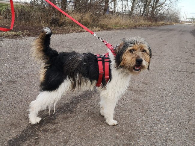 Anfangs war Arlo stark verunsichert und misstrauisch. Im Tierheim fasste er jedoch langsam Vertrauen und zeigte sich seinen Pflegern gegenüber zunehmend zugänglich. Draussen an der Leine war er lange angespannt und reagierte mit Schnappen und Bellen, machte aber mit seinem Pfleger Laci deutliche Fortschritte. Auch bei unserem Besuch im September 2022 gab er sich freundlich und lief – trotz etwas Anspannung – gut an der Leine. Leckerlis liebt er sehr. Im Auslauf zeigt er sich ausgelassen und lebensfroh.