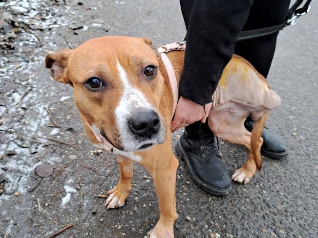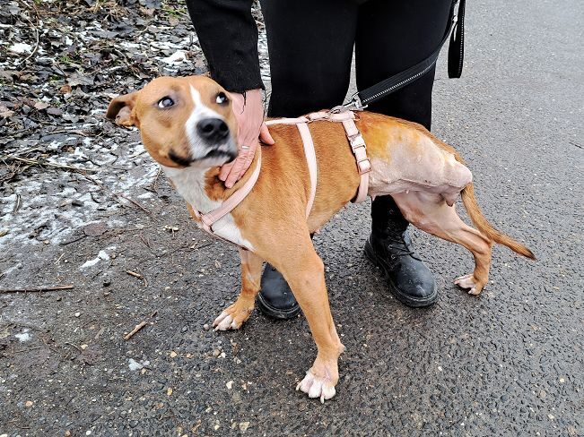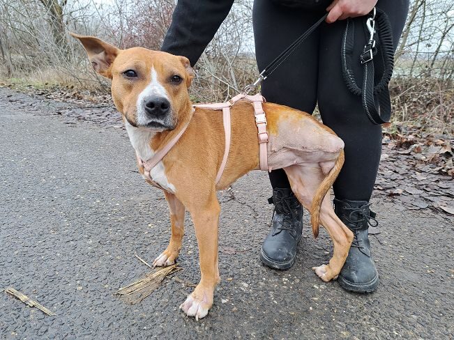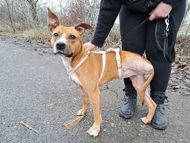 Die im April 2023 geborene Bella wurde kurz nach Weihnachten 2024 schwer verletzt und ausgehungert auf der Strasse gefunden. Sie kam sofort in die Klinik nach Budapest. Ein vermuteter Autounfall hatte vor allem ein Hinterbein und eine Vorderpfote schwer verletzt. Das Hinterbein musste amputiert werden, die Vorderpfote konnte gerettet werden.