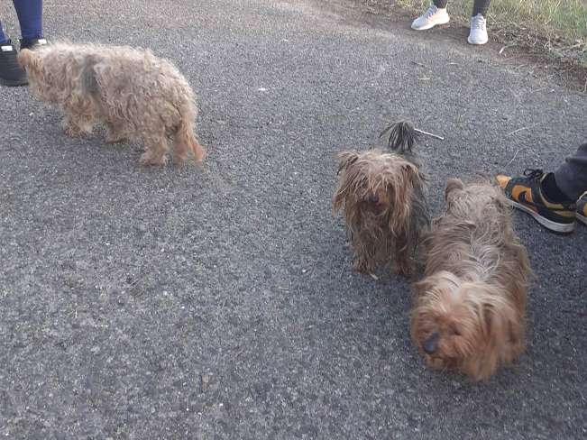 Mitte März 2026 erhielt die Tierheimleiterin Kata einen Anruf von einer Frau, die berichtetet, dass sie und ihre Kinder eben 3 völlig verwahrloste kleine Hunde in einem Waldstück gefunden hätten. Sofort machten sich 2 Heimmitarbeiter auf den Weg zum angegebenen Ort, wo die Mutter mit ihren beiden Töchtern bei den Hunden gewartet hatte. Was für ein Glück für die 3 Hundchen, dass sie auf diese tierlieben Menschen gestoßen waren, die nicht wegschauten, sondern sich kümmerten. Und das hatten die drei auch dringend nötig, denn sie befanden sich in einem furchtbaren Zustand.
