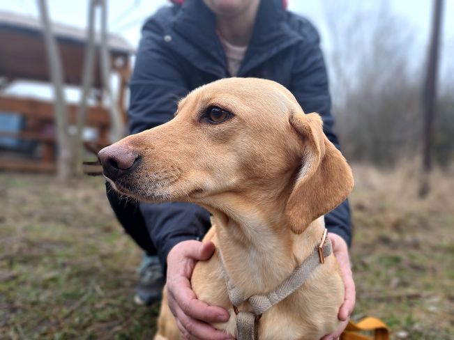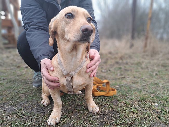 Die geschätzt im April 2025 geborene Daria wurde Anfang Februar 2026 zusammen mit dem kleinen Rüden Kingston von einem der ehrenamtlichen Helfer des Tierheims auf einem Supermarktparkplatz entdeckt, wo die beiden Fellnasen total verloren herumhuschten. Der Helfer bewies sein gutes Händchen im Umgang mit Hunden, waren die beiden doch absolut ängstlich und verschreckt. Doch es gelang dem jungen Mann die beiden zu sichern und ins Tierheim zu bringen.
