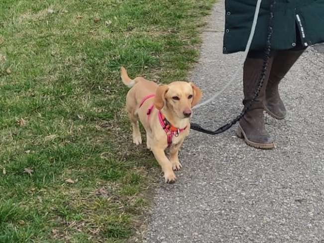 Draußen orientiert sich Daria zunächst stark an ihrem Leinenführer – die vertraute Nähe gibt ihr Sicherheit. Nach kurzer Zeit entspannt sie sich jedoch spürbar und beginnt, ihre Umgebung neugierig zu erkunden. Neue Eindrücke und unbekannte Geräusche nimmt sie aufmerksam und besonnen wahr – sie beobachtet alles lieber erst aus sicherer Distanz, bevor sie sich heranwagt. Und für gemeinsame Ausflüge ist sie bestens gerüstet: Autofahren meistert sie bereits entspannt.