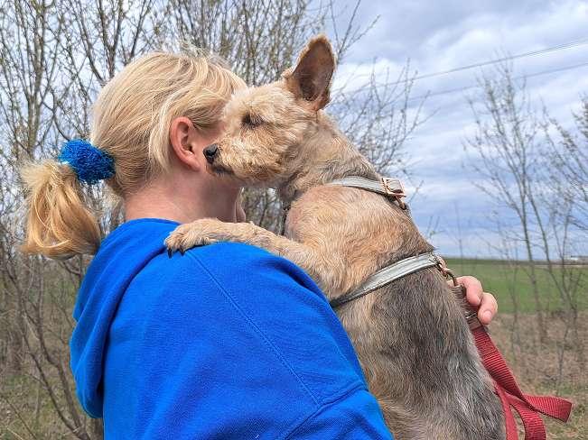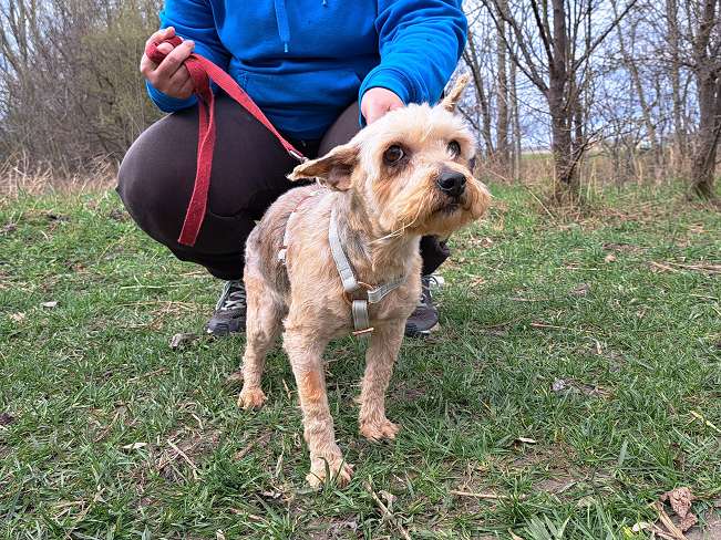 Mitte März 2026 erhielt die Tierheimleiterin Kata einen Anruf von einer Frau, die berichtetet, dass sie und ihre Kinder eben 3 völlig verwahrloste kleine Hunde in einem Waldstück gefunden hätten. Sofort machten sich 2 Heimmitarbeiter auf den Weg zum angegebenen Ort, wo die Mutter mit ihren beiden Töchtern bei den Hunden gewartet hatte. Was für ein Glück für die 3 Hundchen, dass sie auf diese tierlieben Menschen gestoßen waren, die nicht wegschauten, sondern sich kümmerten. Und das hatten die drei auch dringend nötig, denn sie befanden sich in einem furchtbaren Zustand.