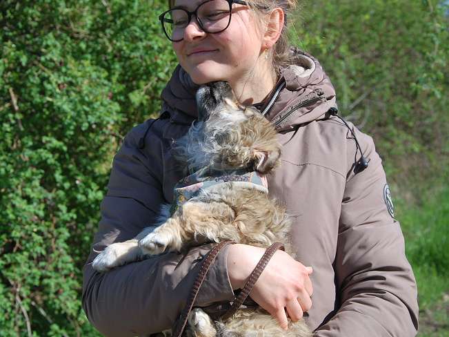Kurzinfo: freundlich, fröhlich, aufgeweckt, zugewandt, welpentypisch verspielt, verschmust, verträglich, Familie+, ältere Kinder/Jugendliche+