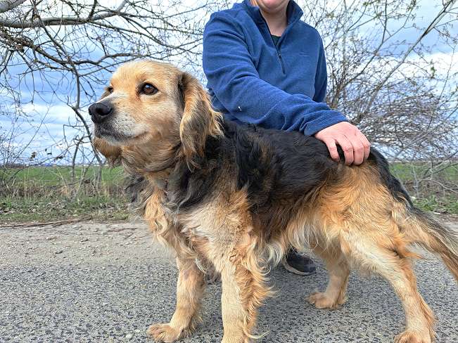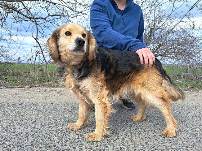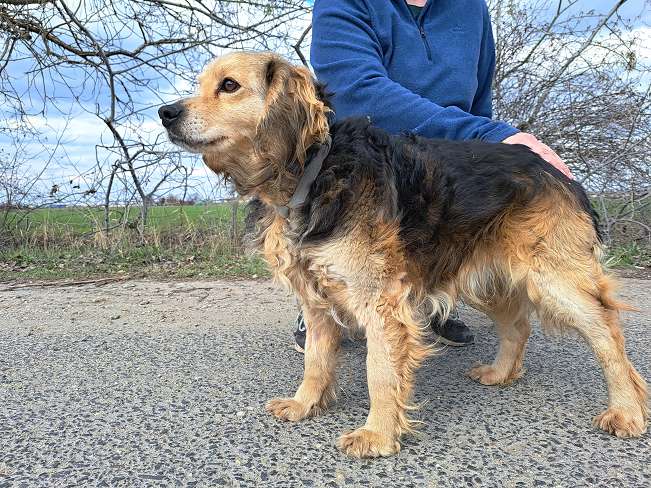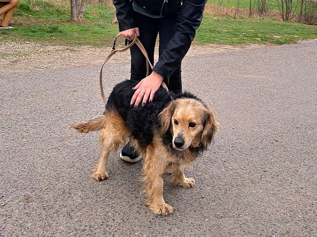 Der geschätzt im März 2018 geborene Mbppé wurde Anfang März 2026 von einem jungen Pärchen abends alleine auf der Straße entdeckt und der herbeigerufene Tierheimmitarbeiter Levente holte den süßen Hundemann ab.