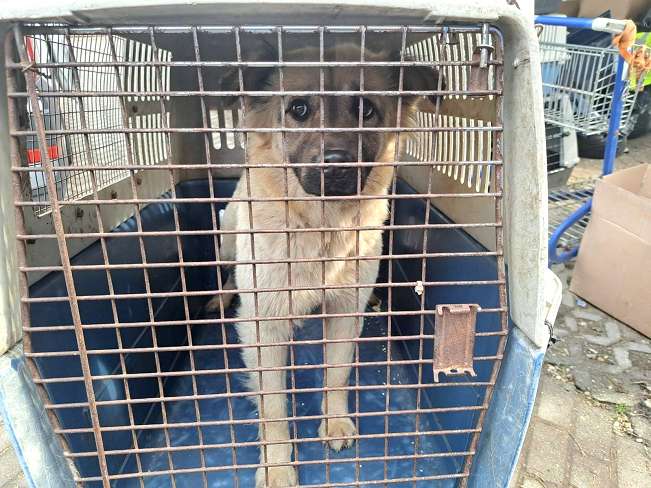 Die geschätzt im März 2024 geborene Samanta streunte Anfang März 2026 über mehrere Tage auf der Suche nach Futter um das Grundstück einer Jägergemeinschaft herum. Es gelang den Männern nicht, die ängstliche Hündin anzulocken, doch dann ging sie eines nachts in eine dort aufgestellte Lebendfalle und die Jäger verständigten das Tierheim.