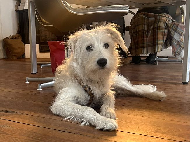 Snoopy darf sein Pflegefrauchen unter der Woche mit ins Büro in der Stadt begleiten und schläft dort ruhig, so dass man ihn kaum bemerkt. Die Wochenenden verbringt er in ländlicher Umgebung mit Hof und Stall und zeigt keinen Jagdtrieb.