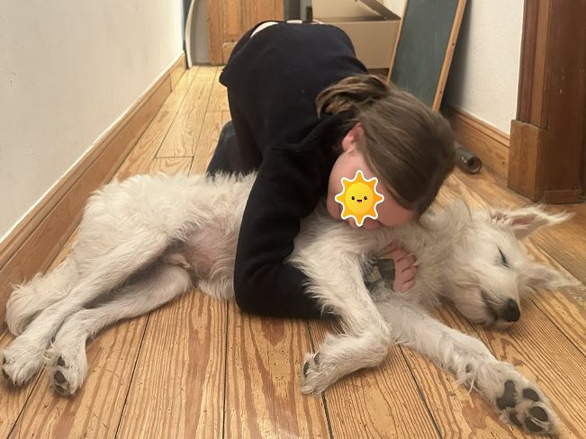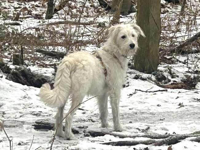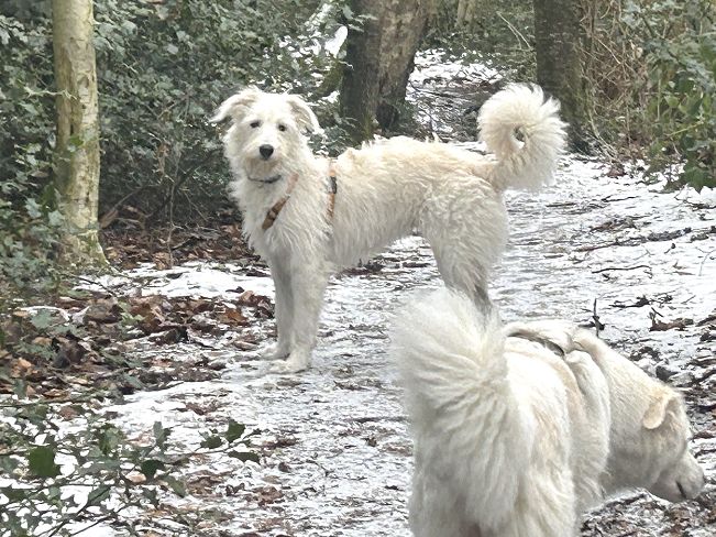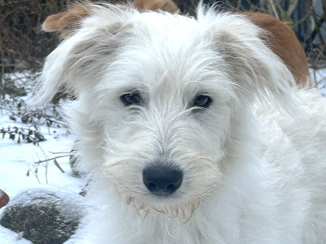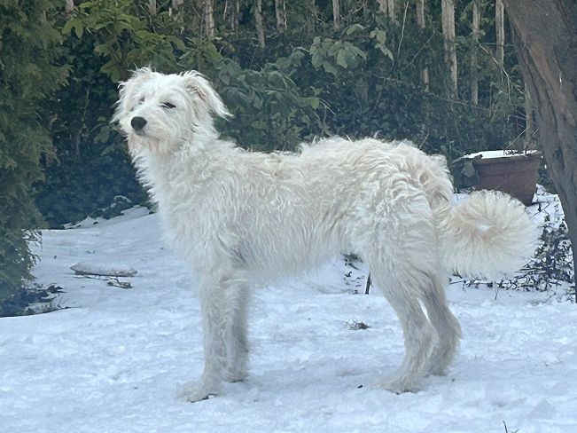 Ein Gentest bestätigte bei Snoopy einen höheren Anteil Kuvasz, ein ungarischer Hirtenhund, und damit auch dass er ein eher größerer Hund werden wird. Es zeigt sich aber auch, dass sich Snoopy am wohlsten auf dem Hof und im Stall fühlt, in dem die Familie ihre Pferde stehen hat. Dort kontrolliert er ruhig und aufmerksam das Gelände, bleibt zuverlässig auch ohne Zaun und hält respektvollen Abstand zu Pferden und Ziegen.