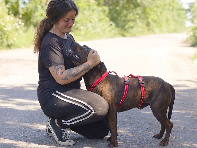 Vegas ist ein aktiver, neugieriger und bewegungsfreudiger Hund, der im Tierheim jedoch viel zu selten rauskommt. Bei Spaziergängen ist er anfangs aufgeregt und zieht, beruhigt sich aber und läuft dann ordentlich an der Leine. Er geniesst zudem Kuscheleinheiten sehr.