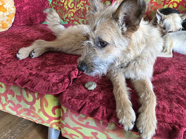 Wally ist stubenrein. Bloss nach längeren Aufenthalten im Wasser kann es mal vorkommen, dass noch ein kleines Malheur passiert.