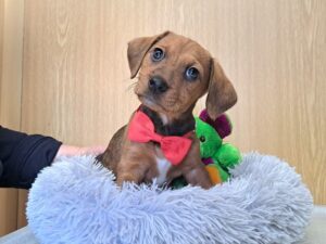 Kurz­in­fo: fre­undlich, zuge­wandt, welpen­typ­isch ver­spielt, ver­schmust, verträglich, noch etwas vor­sichtig & schüchtern